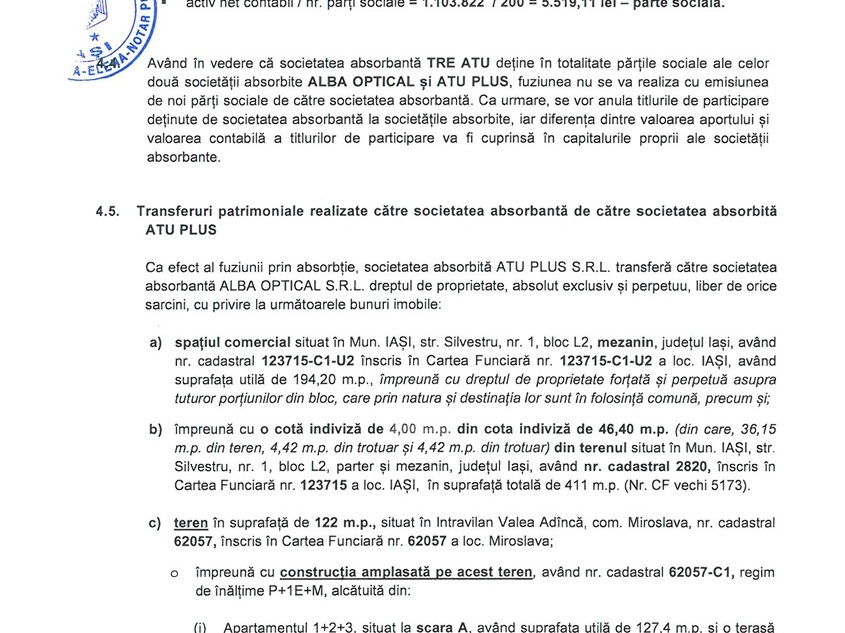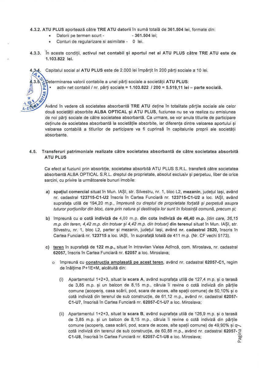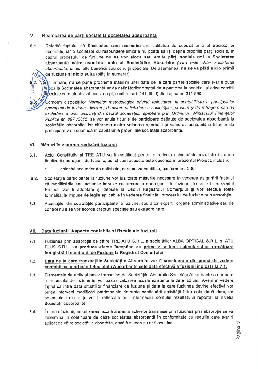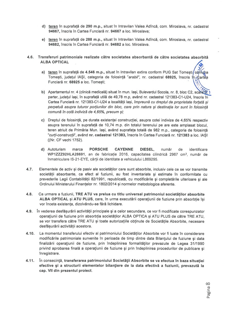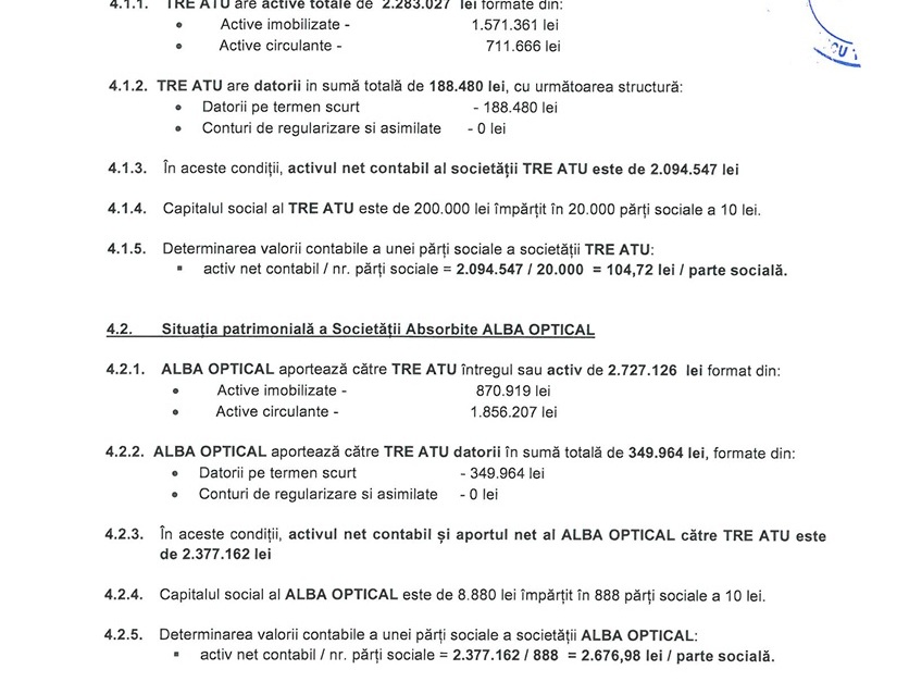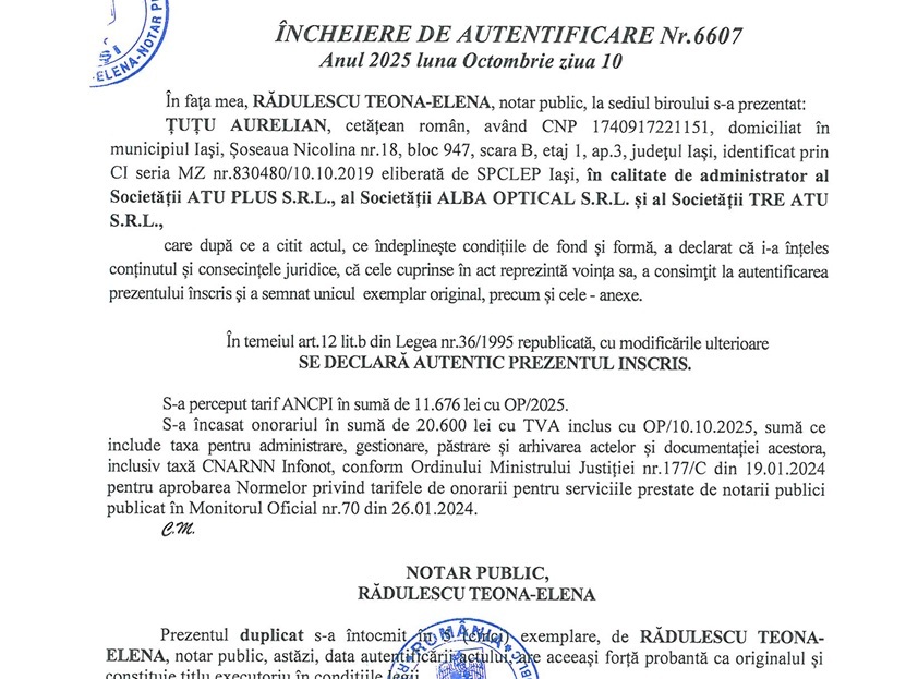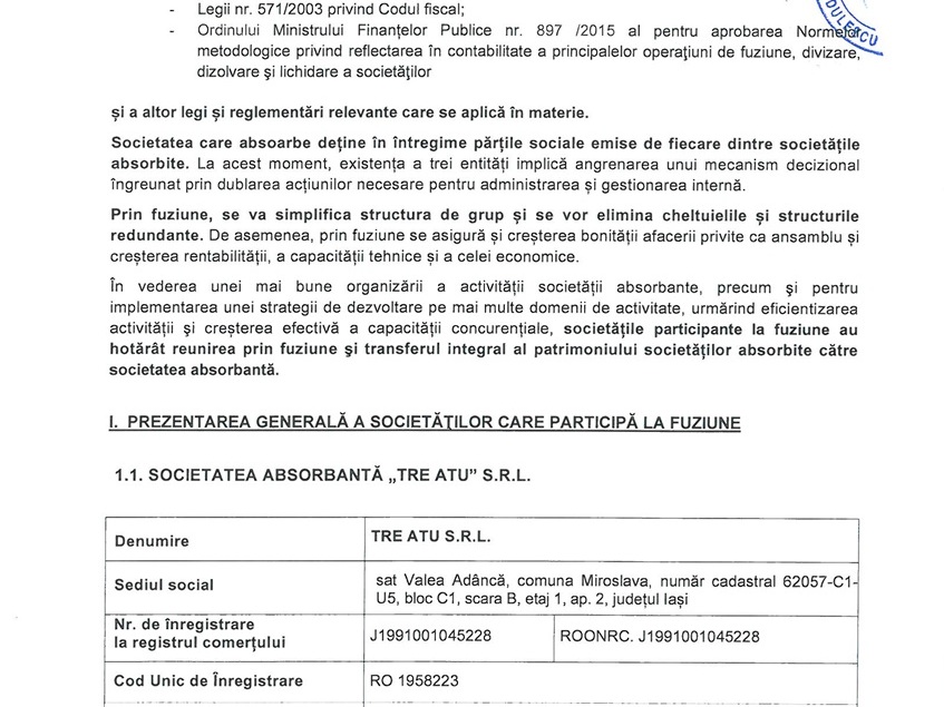 Anunț de interes public: PROIECT DE FUZIUNE din 10.10.2025 Societate absorbantă – TRE ATU S.R.L. Societate absorbită 1 – ALBA OPTICAL S.R.L. Societate absorbită 2 – ATU PLUS S.R.L.